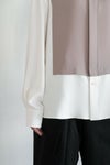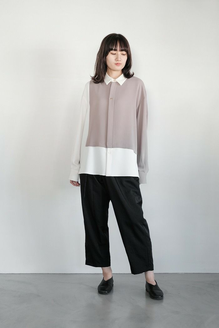 白シャツをベースに、グレージュの生地を重ねて、