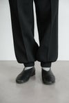 クライミングパンツのようなナイロンベルトのディテールを取り入れたイージーパンツ。