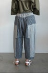 個性が光るヒッコリー生地のパッチワークパンツ