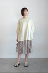 ウエストは総ゴムで楽に履いていただけるデザイン。両サイドにスリットポケット、ヒップにパッチポケット付き。