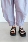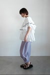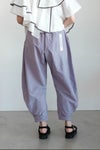 nunuforme定番のヘムタックカーブパンツ。今シーズンはナイロン素材で、ハリのある生地感とスポーティさを演出しています。裾部分にはタックが施され、動きやすさとスタイリッシュさを両立。