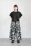 壁に広がった蔦をイメージしたオリジナルプリントのドローパンツ