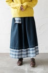 裾をネルチェック生地で切り替えたギャザースカート。 しっかりとしたハリ、コシのあるインディゴのコットンリネン生地をベースに、 爽やかなチェック柄のコットンネル生地を部分使いしています。 異素材の組み合わせが楽しいデザイン。