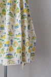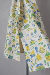 おもちゃ作家mokuma制作による木版画をプリントした新作テキスタイル『sanpo』住宅街にある図鑑houseの半径500mに存在する構造物をデフォルメしたデザインは、実際にあるけど実際には無いっ不思議な世界をお散歩してるような感覚になります。