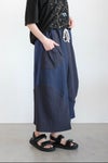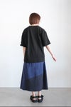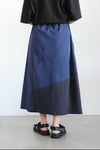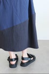 3種類の生地を立体的にパッチワークしたスカート。ぽこぽこと立体感があるので見る角度で違った印象を与えるアイテムです。