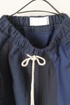 ウエストは総ゴム+紐で調節するデザインなので楽ちん。 ウエストの麻のロープ紐がワンポイントになっています。落ち着いた色合いながらも素材感の組み合わせが個性的なので、シンプルなTシャツを合わせるだけで着映えするアイテムです。