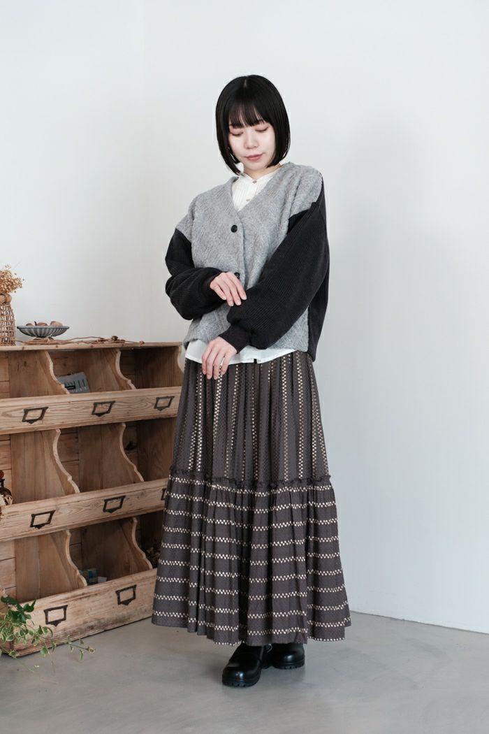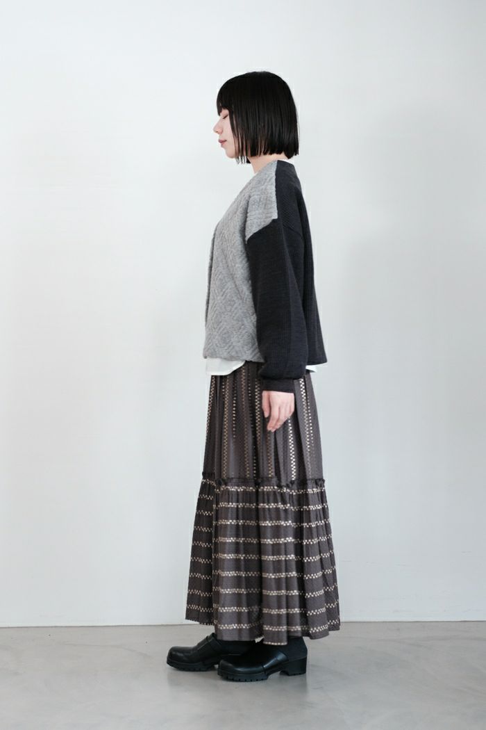 他の画像を見る e’ternite’ de Soi-e エテルニテドゥソワ パイルジャガードバイアス柄Vカーディガン(24AW) 定価 ¥ 22,000 38%OFF ¥ 13,800 税込 お気に入りに登録する