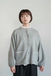 フロントは共糸のバスケットボタン。気軽に羽織りやすい丸首で、きゅっとギャザーを寄せた袖口もアクセントに。 上からコートも羽織りやすいシンプルなデザインなので、長い季節活躍するアイテムです。
