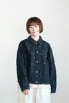 形はベーシックなデニムブルゾンでありながら、後ろ姿に遊び心を加えたデザイン。 肩から袖口へとつながるラインを、ふっくらとしたカーブで立体的に仕立てることで、 デニム特有の硬さを感じさせない、どこかやわらかくて新しいシルエット。 着慣れたはずの「定番」に、優雅なカーブという新しいエッセンスをひとつ加えた、こだわりの詰まったアウターです。