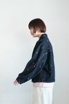 経年変化を楽しむ、小花刺繍のノスタルジックデニムブルゾン。 深みのあるインディゴデニム生地に、カラフルな小花刺繍を丁寧に施した特別なテキスタイルのアイテムです。