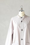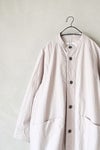 両サイドの大き目ポケットがアクセントになるジャケット。裏地はなく、長い季節楽しめるジャケット。袖カフスは切りっぱなしになっており、ラフさも魅力の1つ。ご自宅でもお手入れしやすく、気軽に羽織りやすい1枚です。
