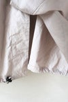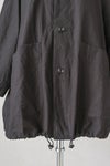 アームホールがゆったりしているので、インナーの厚みやシルエットを気にせずに羽織りやすいデザイン。裾のドローコードを縛り、少しブラウジングして着用するのもお勧めのスタイリングです。