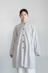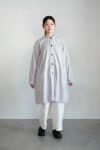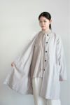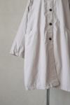 40番手のやや肉厚なポプリン素材に、 薄手のコットンボイル裏地を使用ています。 2重仕立てのなので、季節の端境期におすすめのコートです。 製品染めで仕上げています。