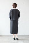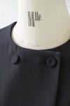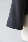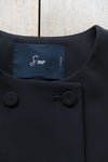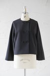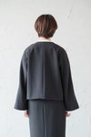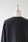 ゆるめの身幅で肩先は少しドロップします。 ノーカラーの丸首で、フロントはダブル仕立て。 共生地のくるみボタンが並んで若々しいアクセントに。 両脇にスラッシュポケット、総裏付き。 同シリーズのワンピースやボトムに合わせていただくと、 よりフォーマル感がUPして、セレモニーにぴったりです。