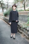 冬の行事から特別なお出掛けまでマルチに活躍するセットアップ対応のジャケット。 丸みのある肩ラインや、外袖口側のみにフレアを展開するなど、 細部にまで拘りを感じるデザインです。 きちんとした印象の中にも、 女性らしいしなやかさを併せ持った一着。
