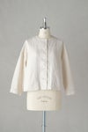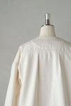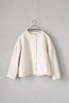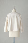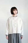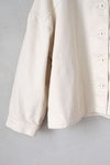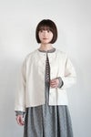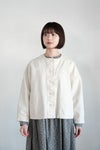 背ヨーク切替にさりげなくタックを入れており、 身幅にゆとりをもたせた着やすいシルエット。 肩幅が広く、肩の落ちるドロップショルダーです。 全体に黄色ステッチを効かせた可愛いデザイン。 くるみボタンもポイントに。 短めの着丈なのでワンピースにもバランスよく羽織っていただけます。 左右ポケットあり。