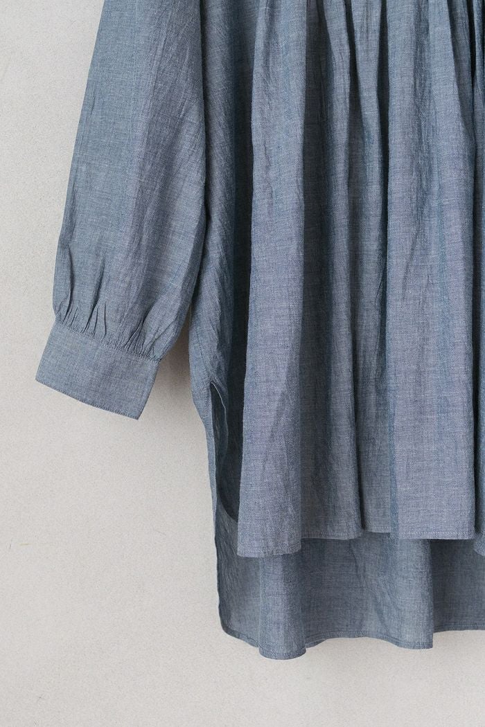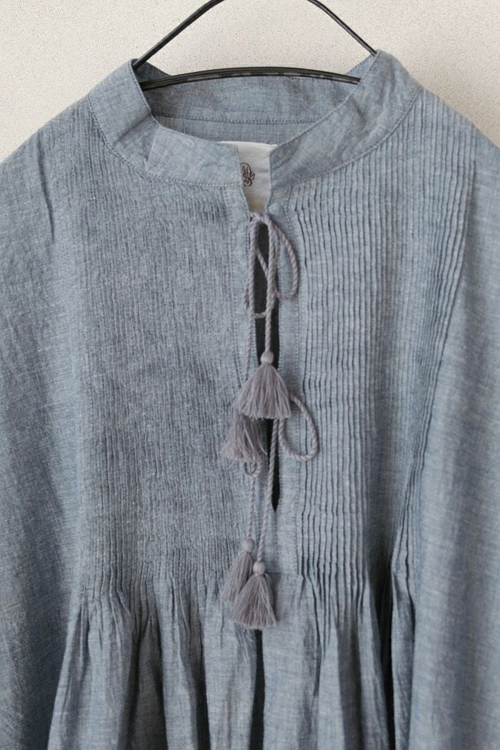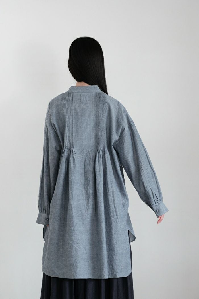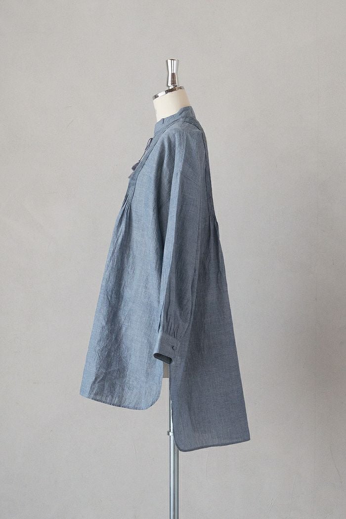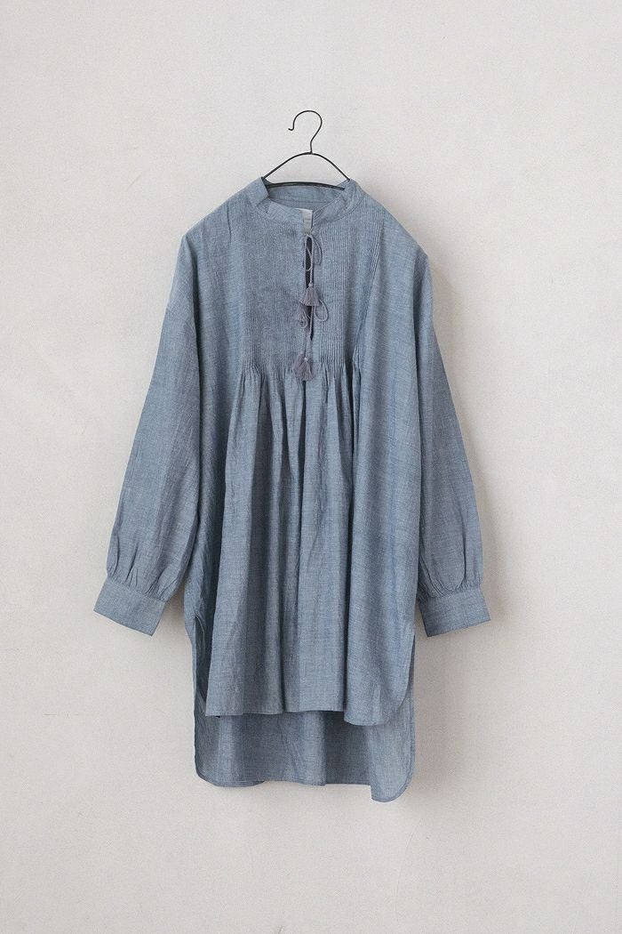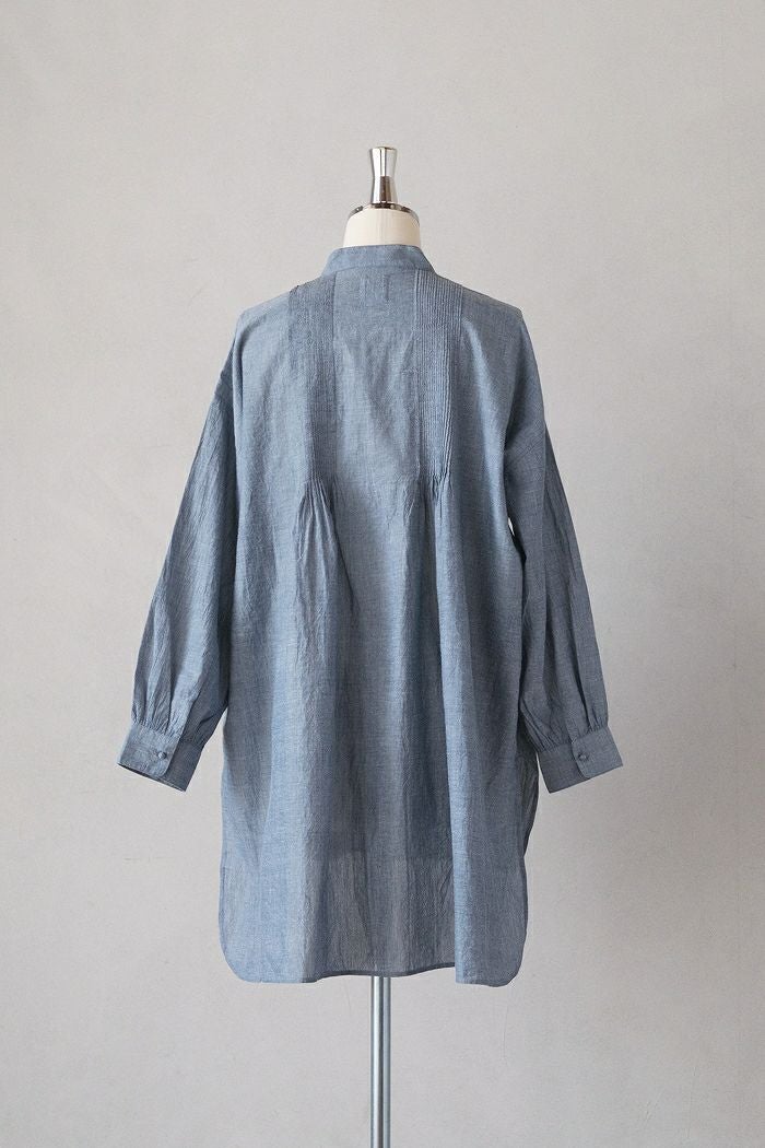 他の画像を見る maison de soil メゾン ド ソイルHANDWOVEN YARN DYE NATURAL INDIGO CHAMBRAY BANDED COLLAR PINTCK TUNIC(25SS) ¥ 27,500 税込 SOLD OUT 再入荷お知らせ お気に入りに登録する