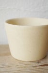 緩やかなゆがみや色むらを付け、土本来の温もり、やわらかさのあるカップです。そば猪口としてはもちろん、飲み物のカップや小鉢、デザートカップとしても、この形は何かと重宝します。日常使いを意識したシンプルな形なので、飽きずにずっと使いたくなる器です。色を統一して使ったり、別の色と組み合わせたりと、バリエーションを楽しんでいただけます。また、カップがシンプルなので、他のシリーズの小皿をソーサーとして組み合わせてお使いいただくと、いろんなパターンが味わえておすすめです。