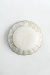 菊の花びらの立ち上がりがきれいな、厚みのある小皿。ざらっとした器肌感があり、粗土のもつ特徴と相まって、いかにも陶器らしい温かみのある仕上がりです。お料理はもちろん、こまごまとした小物を入れて、インテリアに取り入れても素敵なデザインです。