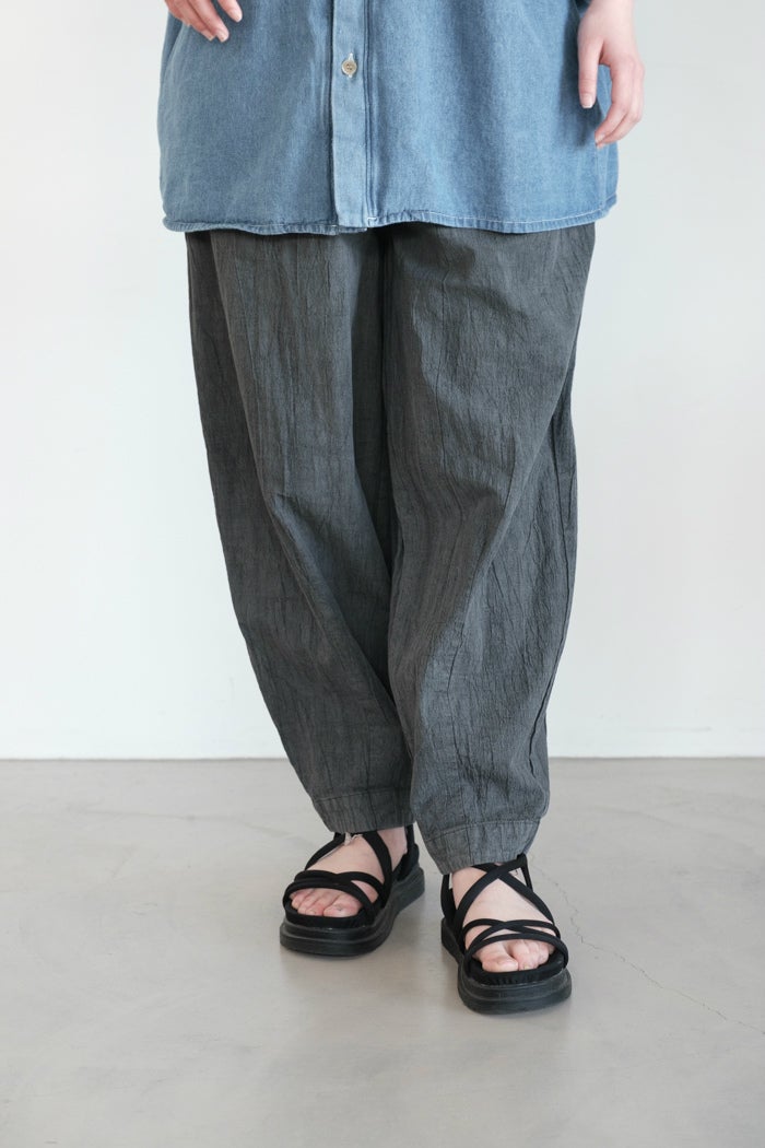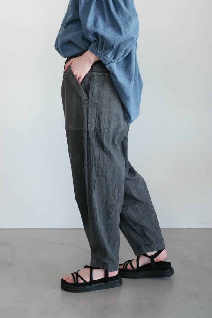 他の画像を見る maison de soil メゾン ド ソイル 40s FRENCH LINEN DYED CANVAS 2TUCK TAPERED EASY PANTS(26SS) ¥ 22,000 税込 お気に入りに登録する