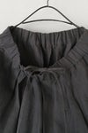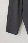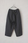 裾部分を少し狭めに設定したテーパードシルエットで、ナチュラルな中にも野暮ったさのないスッキリとした印象に仕上がりました。 ウエストは総ゴム+紐で調節できるデザイン。ゆったりとした履き心地ながらキレイなシルエットを保ちやすいよう、ウエストにタックを施しています。