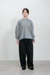 ウエストのゴムギャザーでゆとりをもたせたヒップ回り。 太めのシルエットですが、 裾に向かってやや細くなっているので、 ボリュームのあるトップスと合わせてもバランスよく決まります。 両脇ポケット付き。
