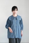 大きなスクエアカラーのロープ染めデニムブラウス