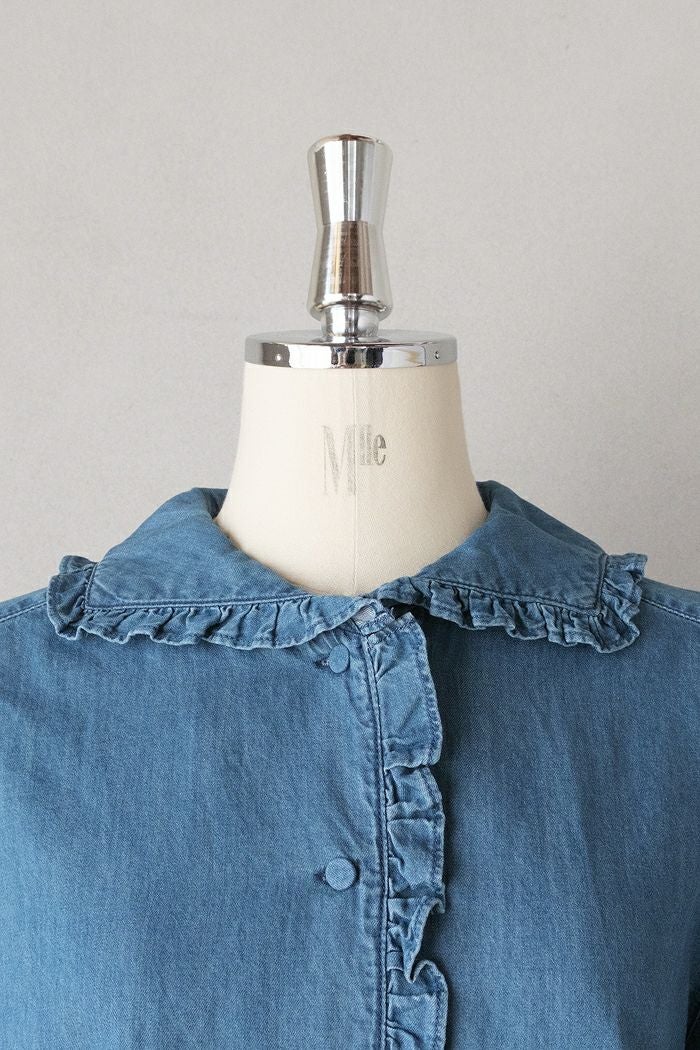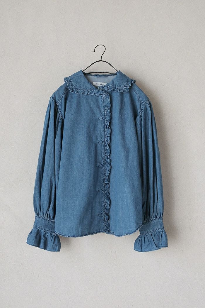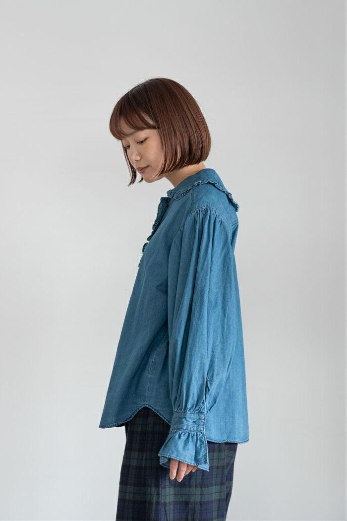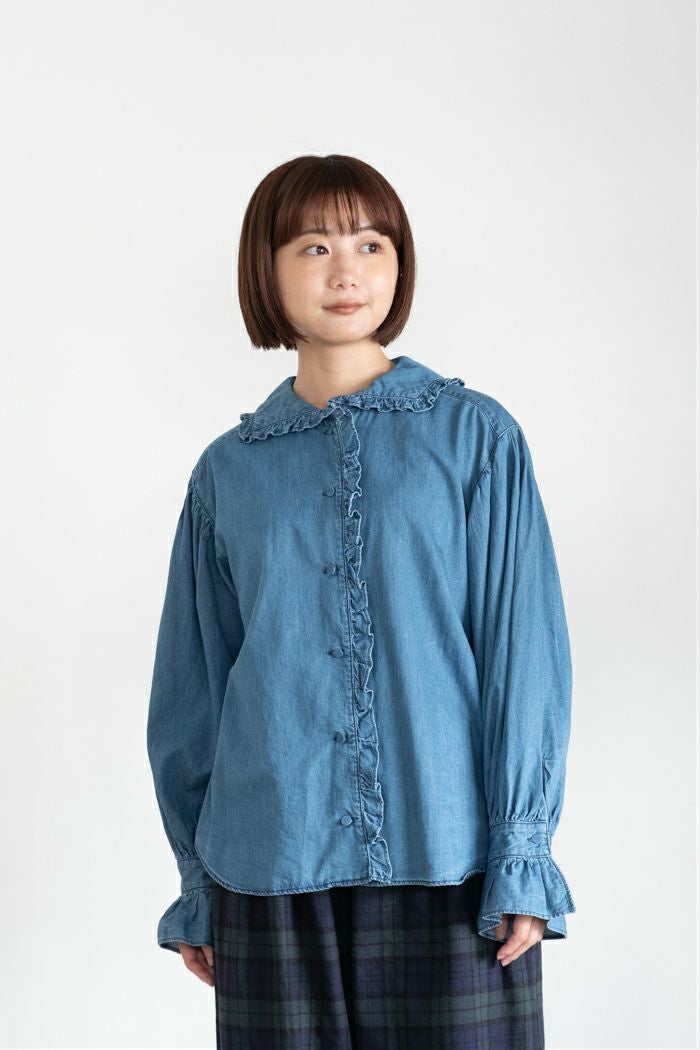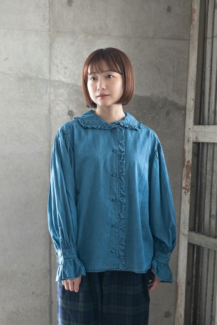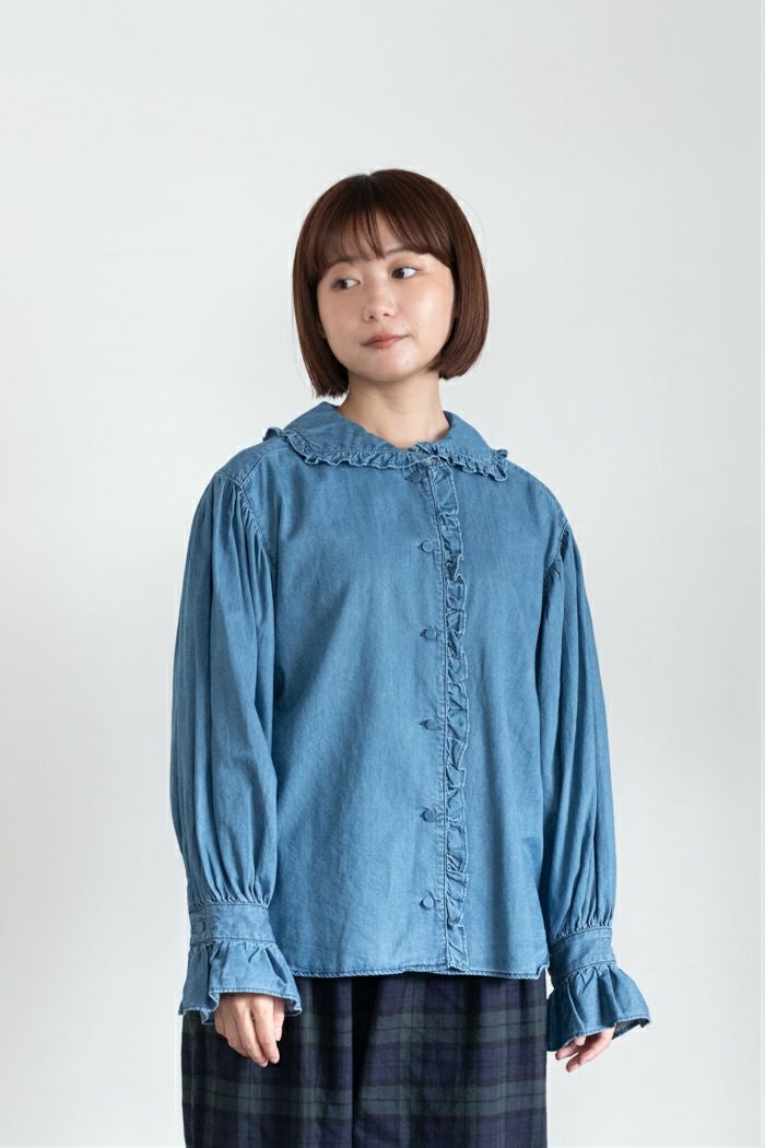 他の画像を見る CHILD WOMAN チャイルドウーマン ライトオンスデニム フリルセーラーシャツ(25AW) 定価 ¥ 17,600 35OFF ¥ 11,400 税込 カートに入れる お気に入りに登録する