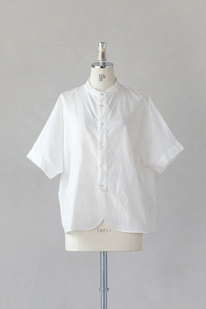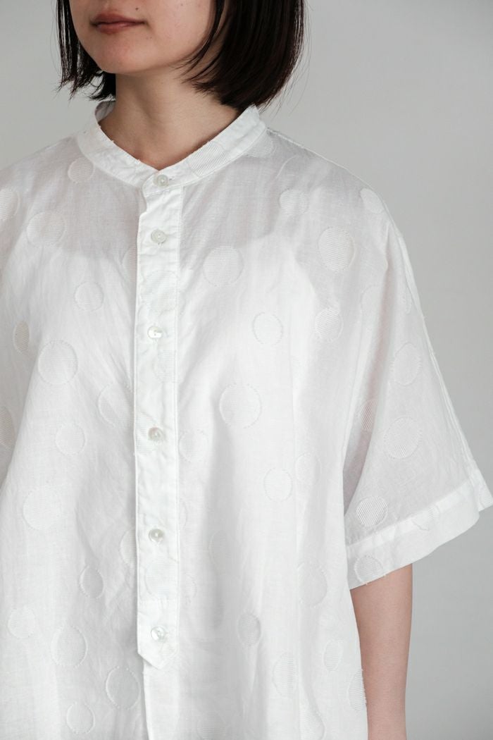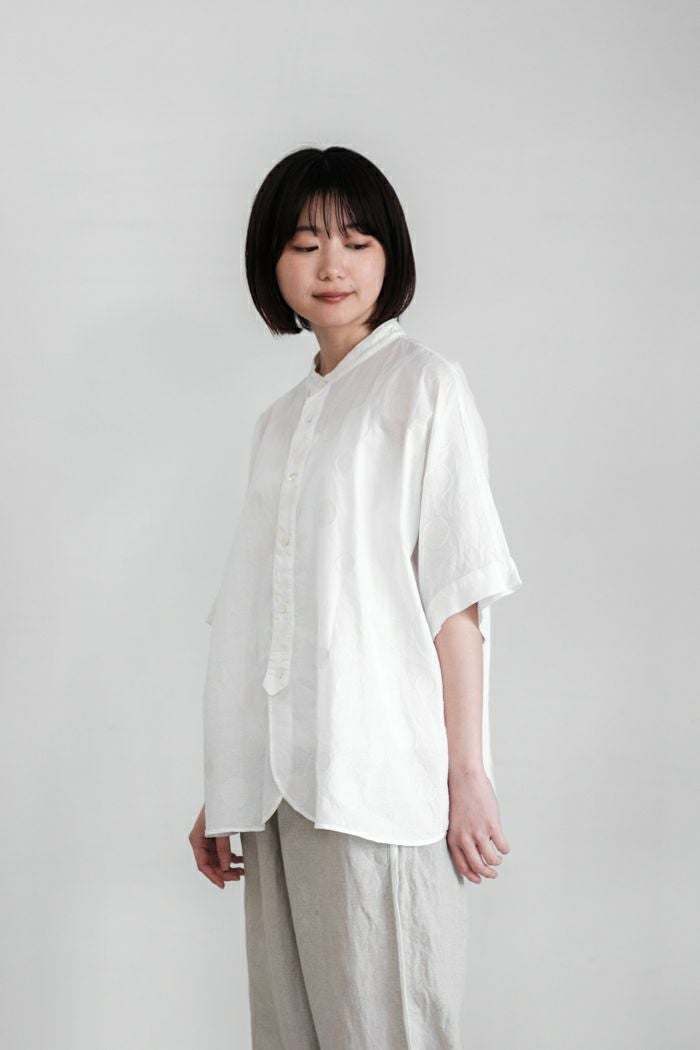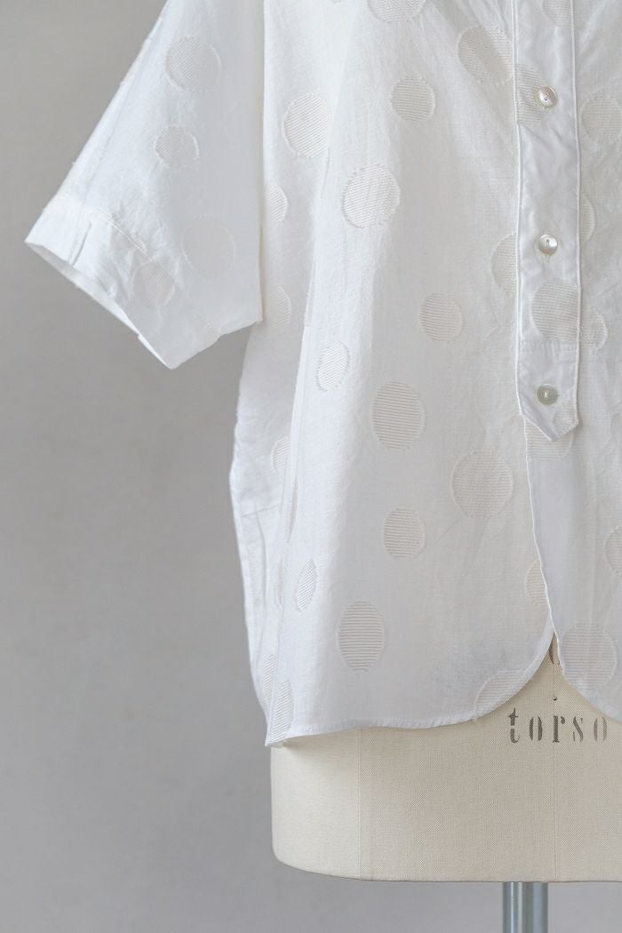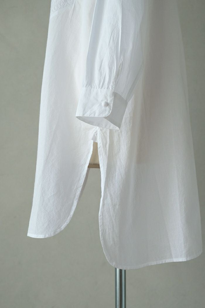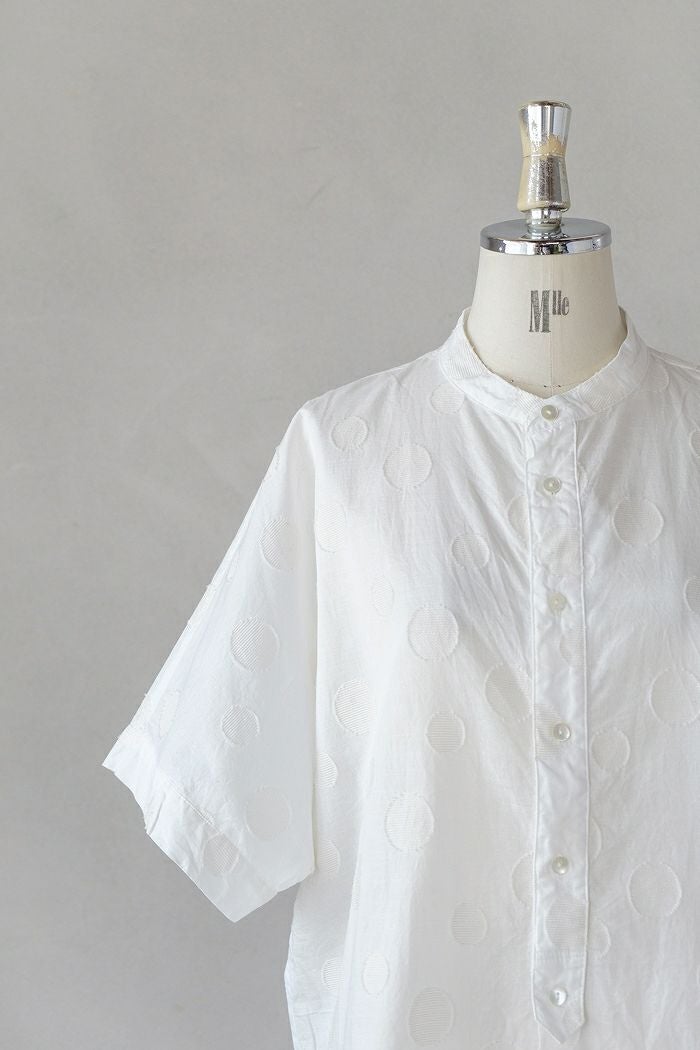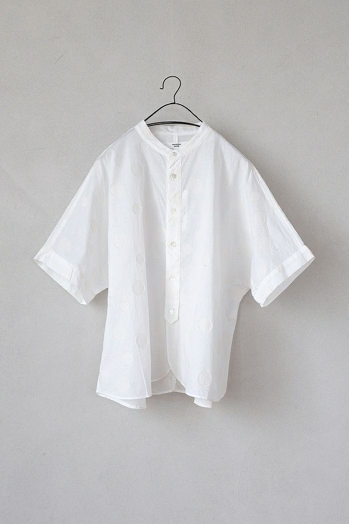 他の画像を見る maison de soil メゾン ド ソイル60s ORGANIC CAMBRIC WITH EMB CREW-NECK BOSOM EMB SHIRT(25SS) ¥ 28,600 税込 SOLD OUT 再入荷お知らせ お気に入りに登録する