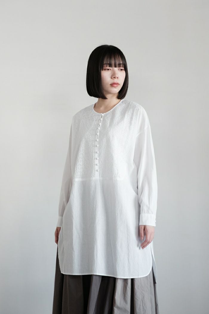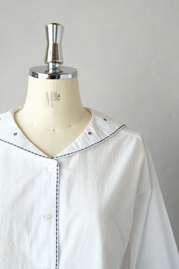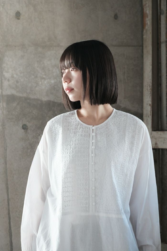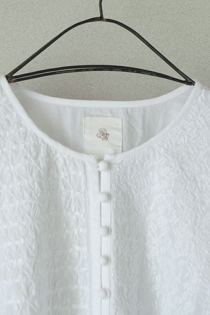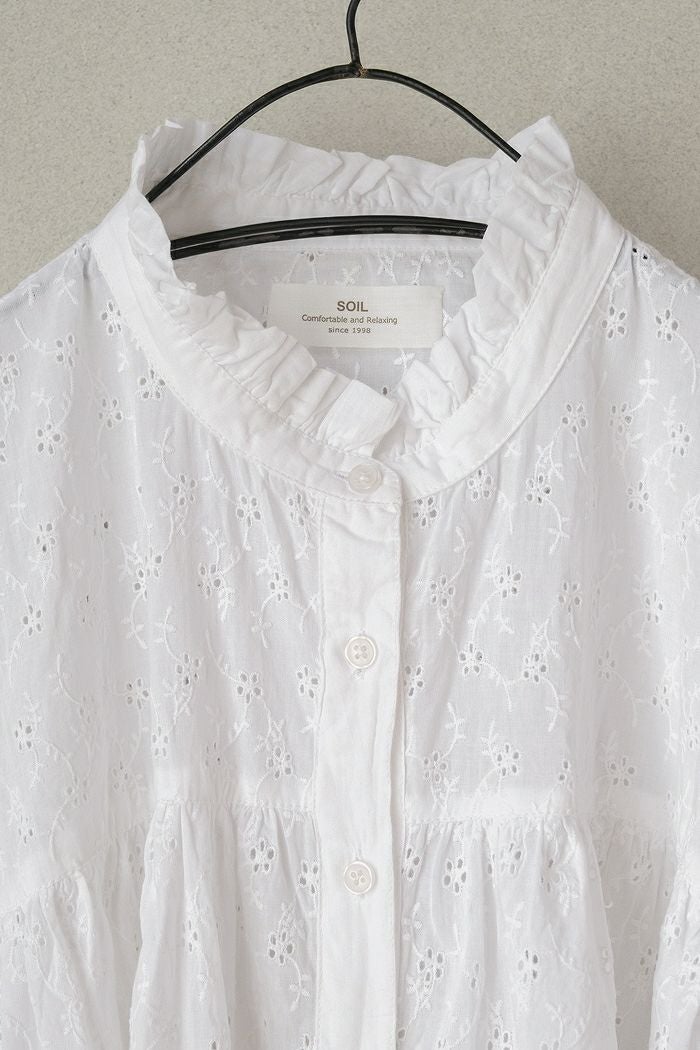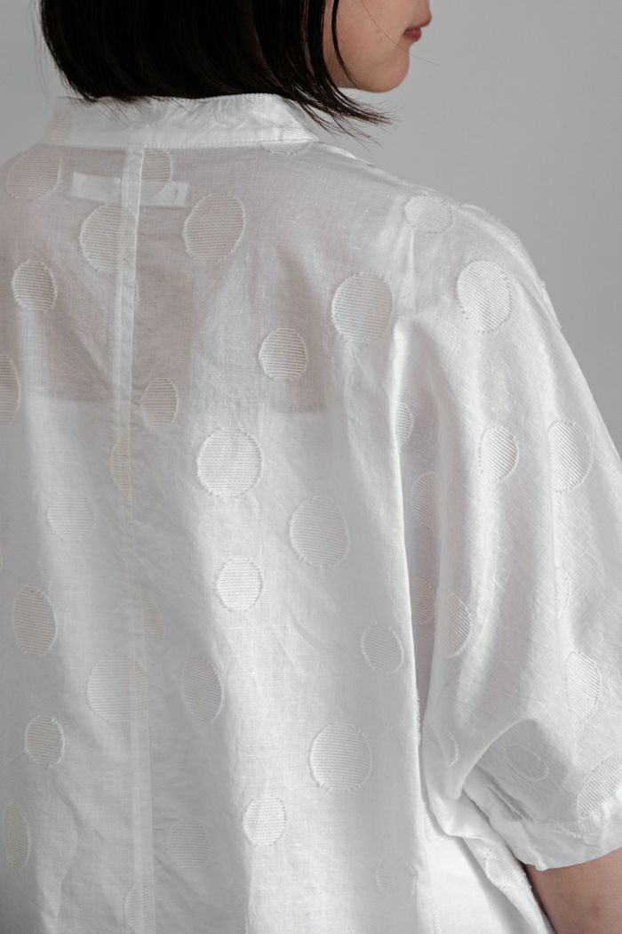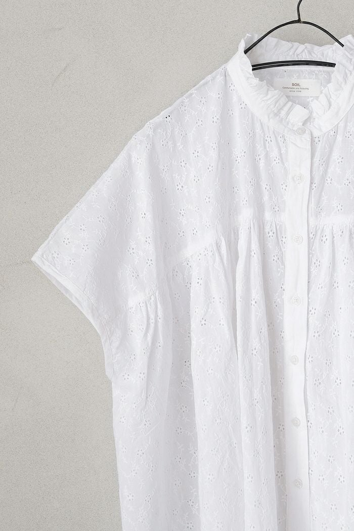 他の画像を見る maison de soil メゾン ド ソイル60s ORGANIC CAMBRIC WITH EMB CREW-NECK BOSOM EMB SHIRT(25SS) ¥ 28,600 税込 SOLD OUT 再入荷お知らせ お気に入りに登録する