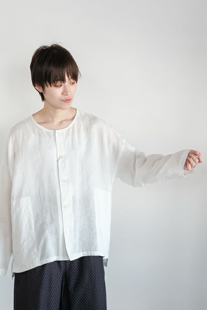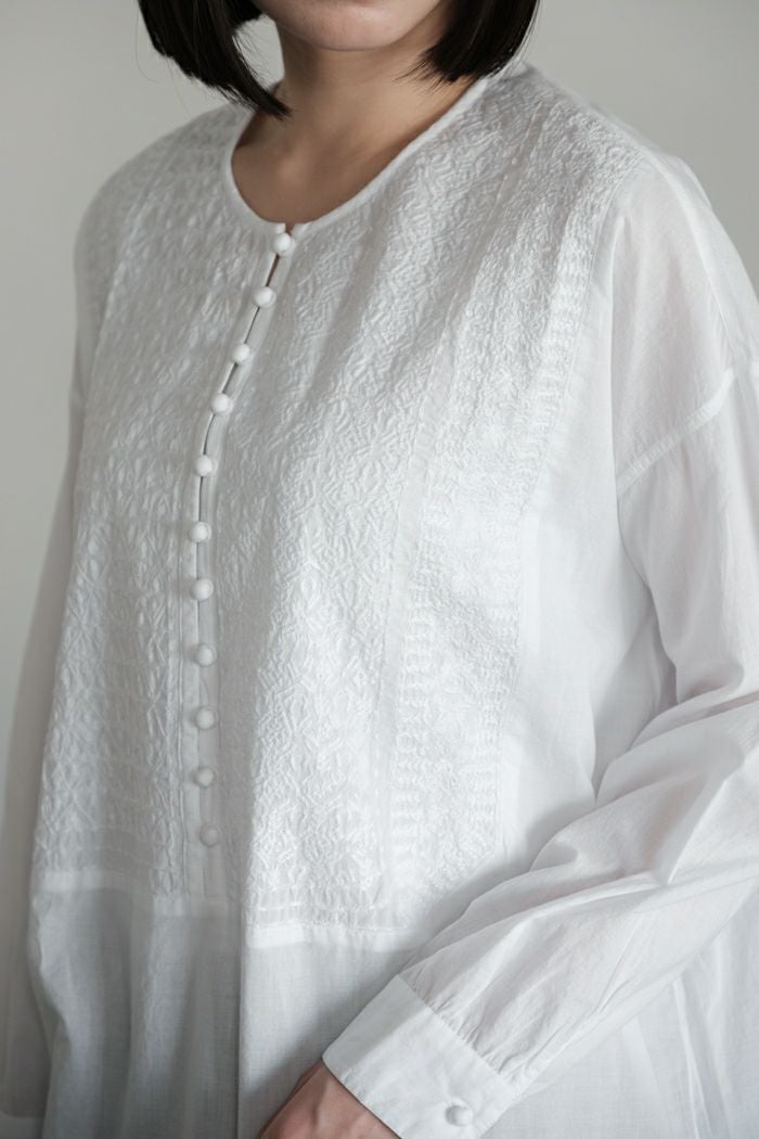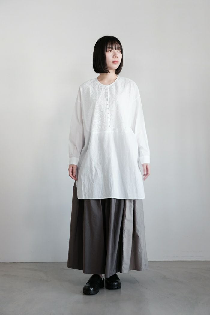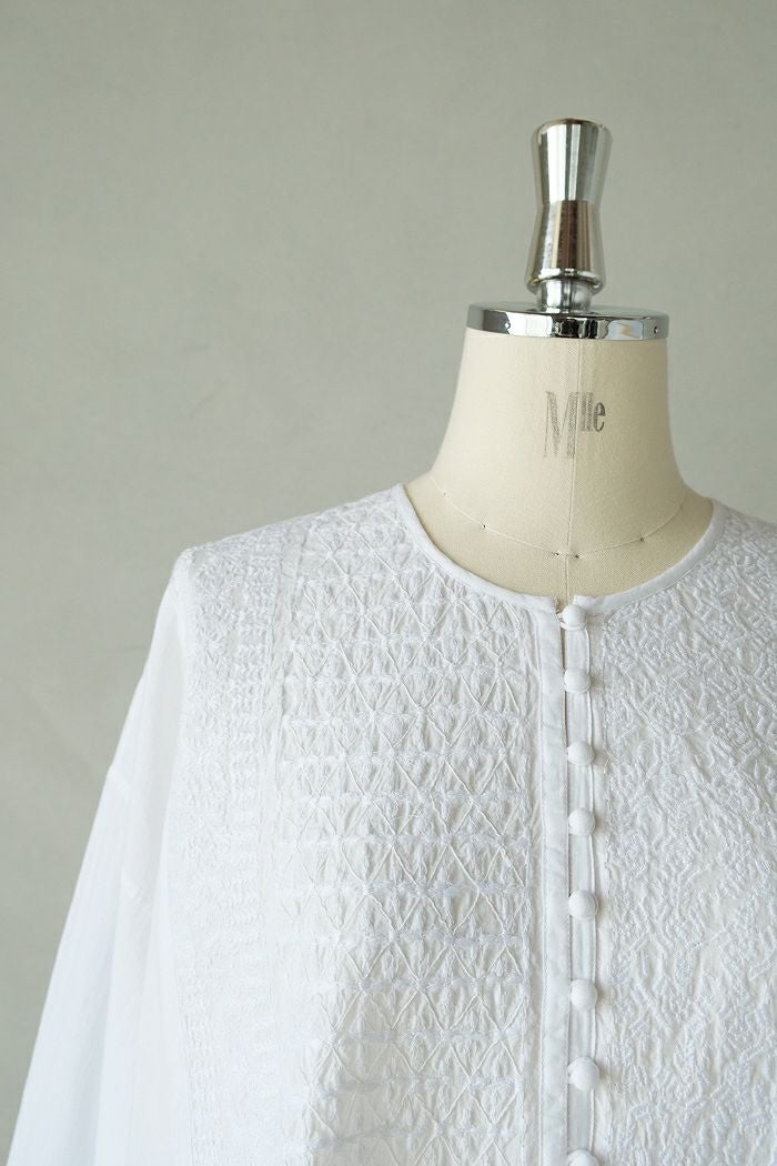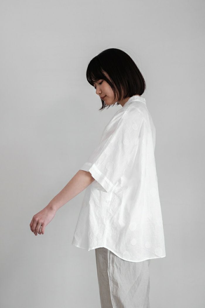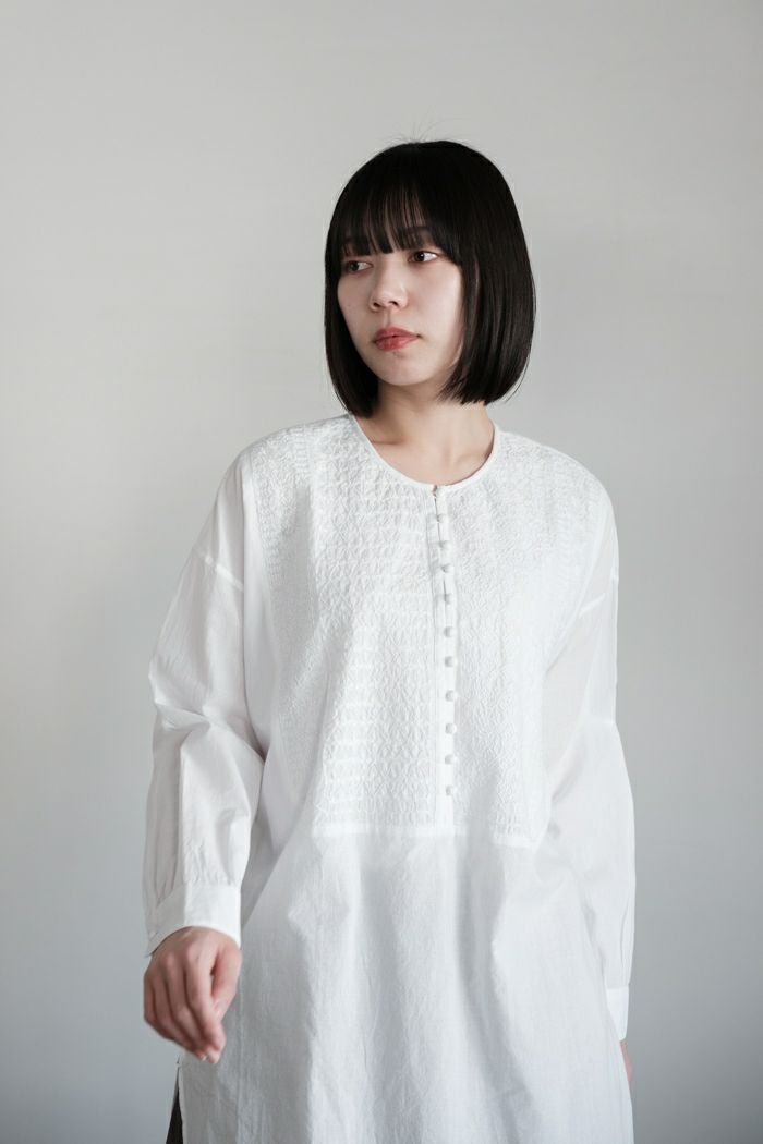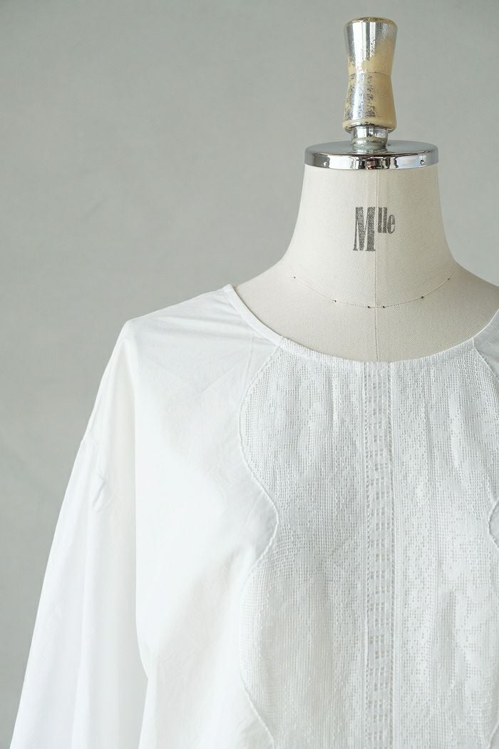 他の画像を見る maison de soil メゾン ド ソイル60s ORGANIC CAMBRIC WITH EMB CREW-NECK BOSOM EMB SHIRT(25SS) ¥ 28,600 税込 SOLD OUT 再入荷お知らせ お気に入りに登録する