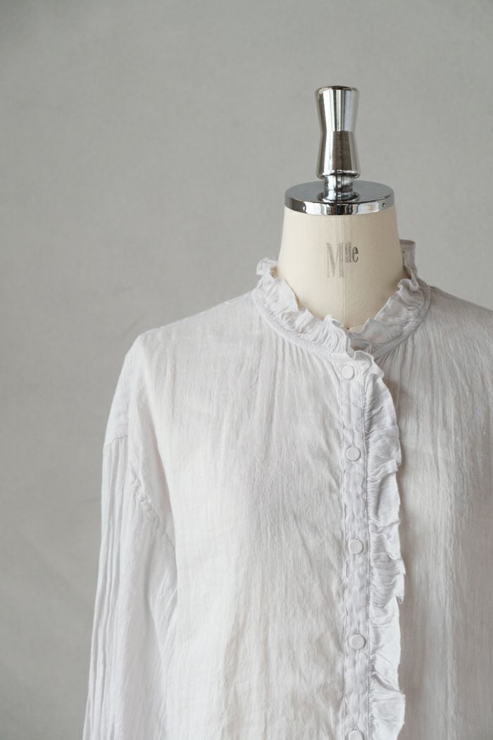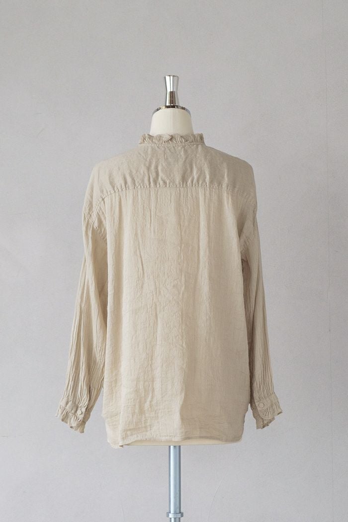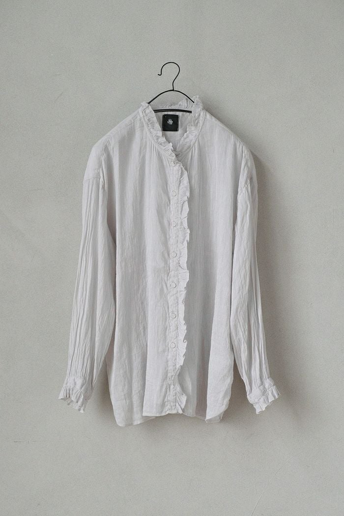他の画像を見る maison de soil メゾン ド ソイル AUTO LOOM COTTON/LINEN PLAIN OVERDYE FRILL COLLAR SHIRT(25SS) ¥ 27,500 税込 SOLD OUT 再入荷お知らせ お気に入りに登録する