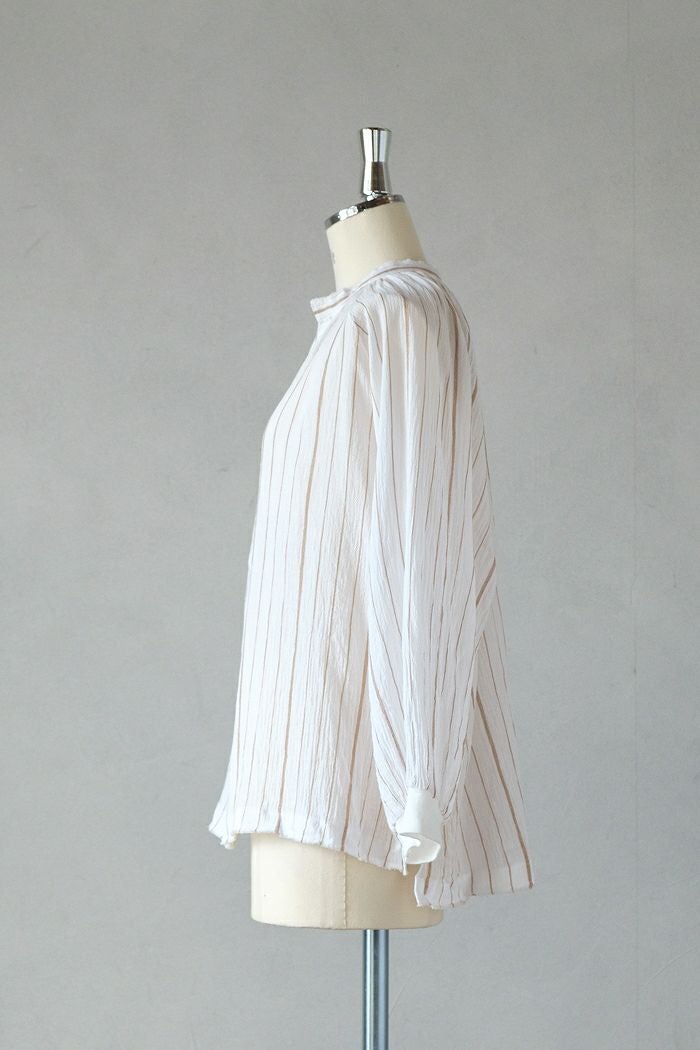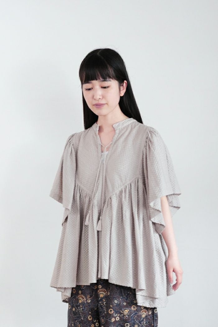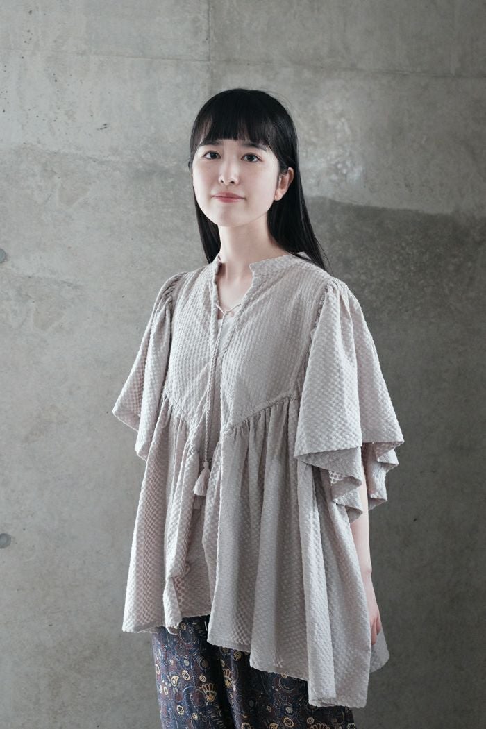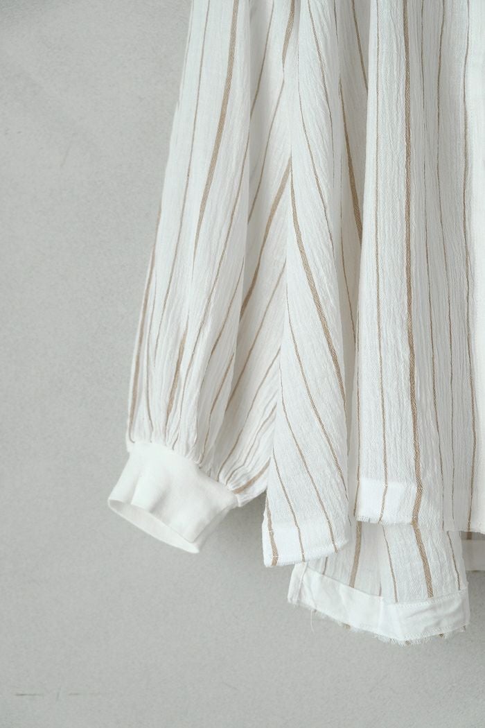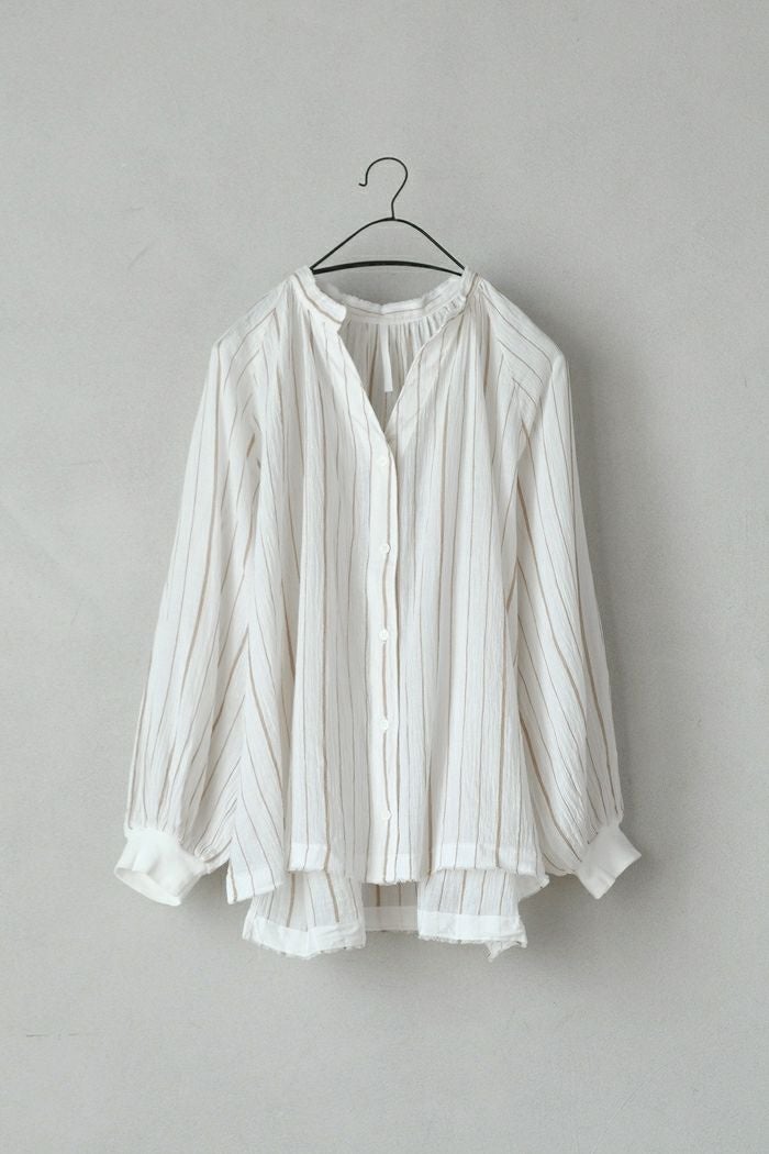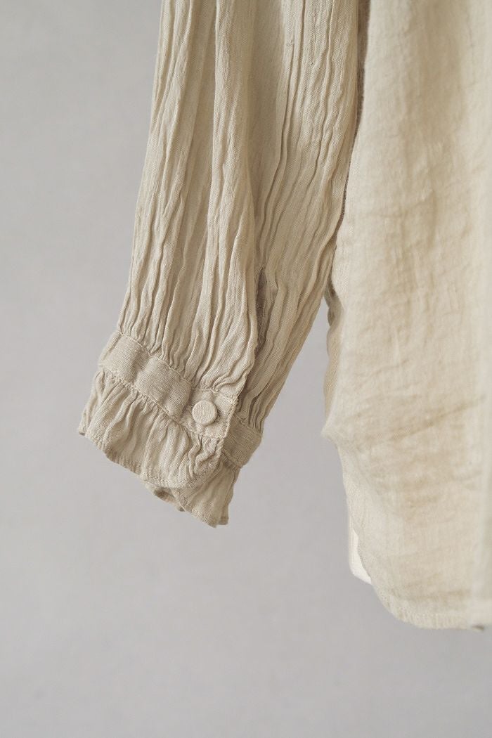 他の画像を見る maison de soil メゾン ド ソイル100s KHADI (100s×150s) WRAP BLOUSE WITH RANDOM PLEATS(25SS) ¥ 35,200 税込 SOLD OUT 再入荷お知らせ お気に入りに登録する