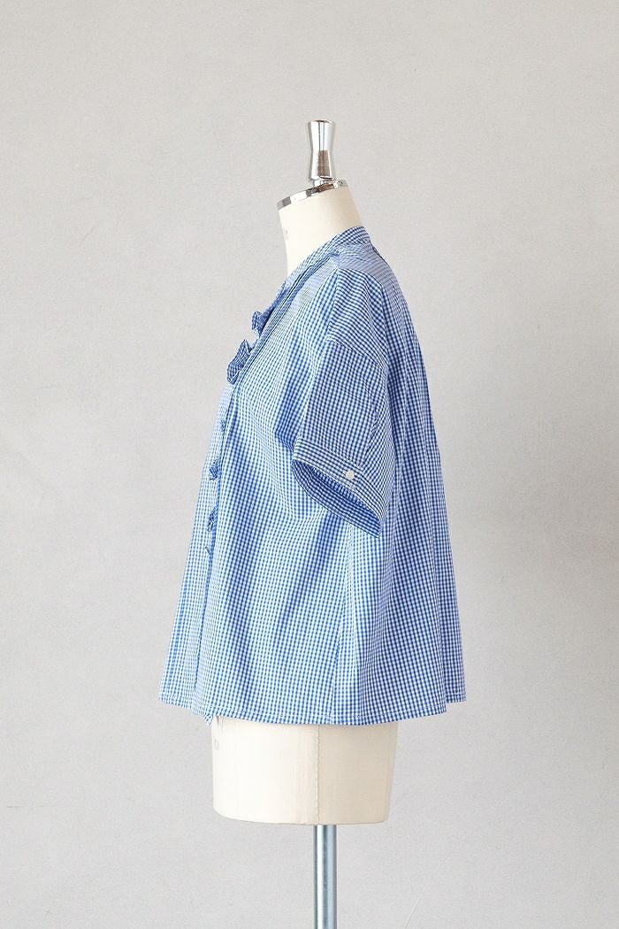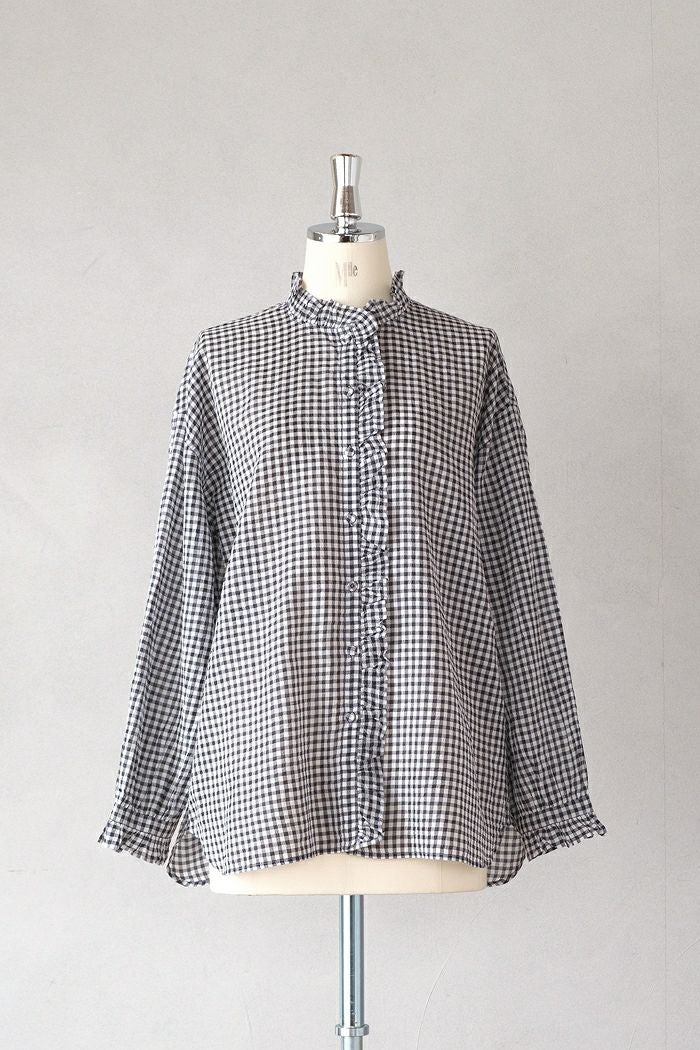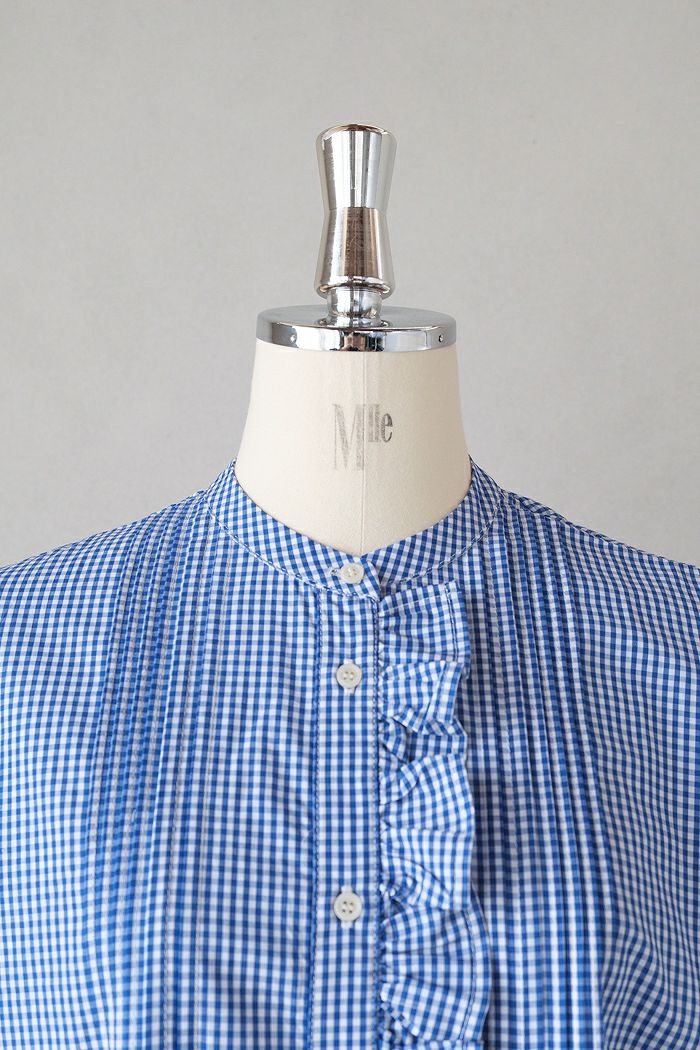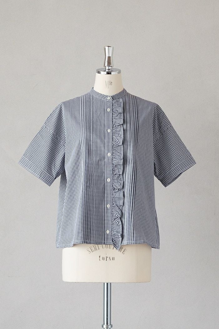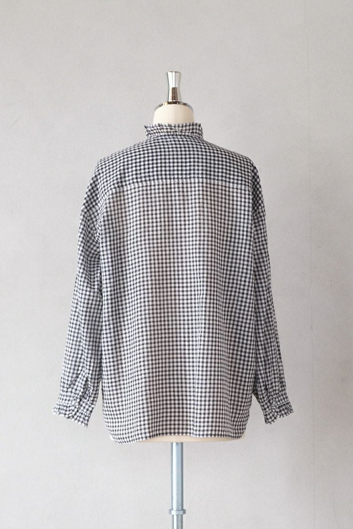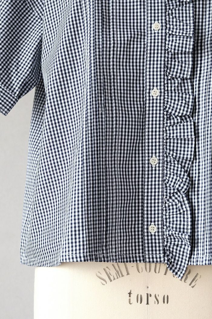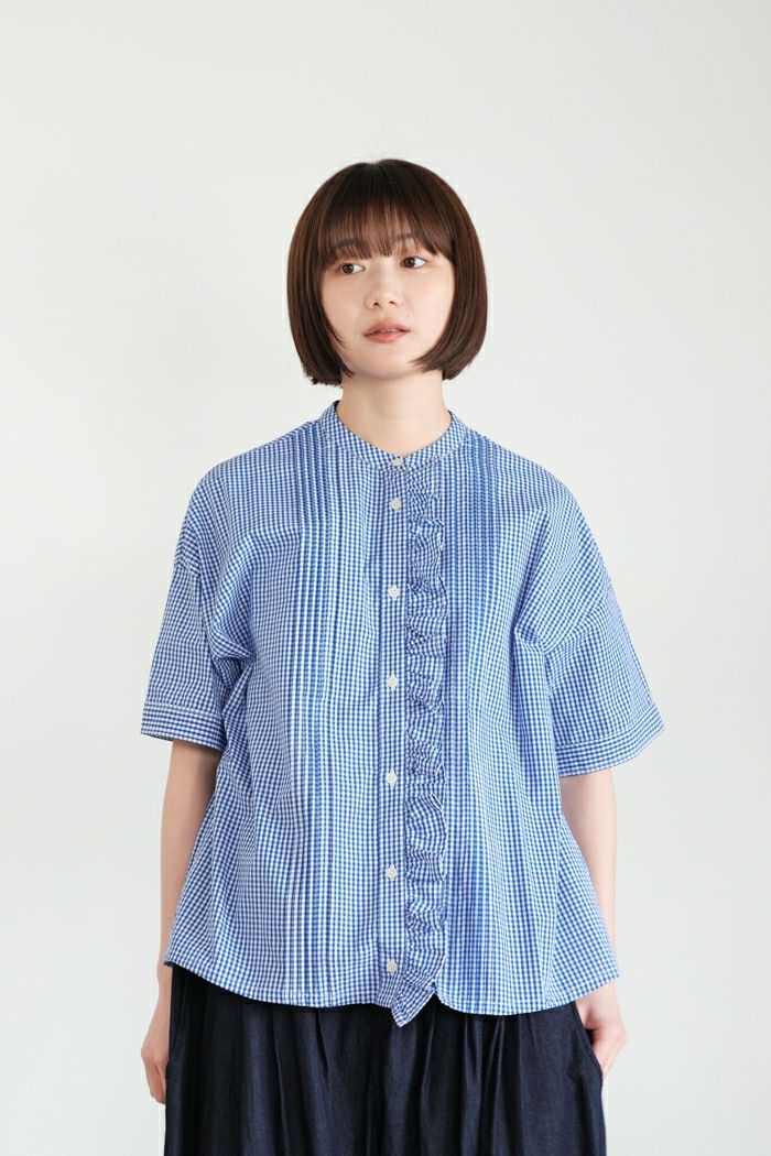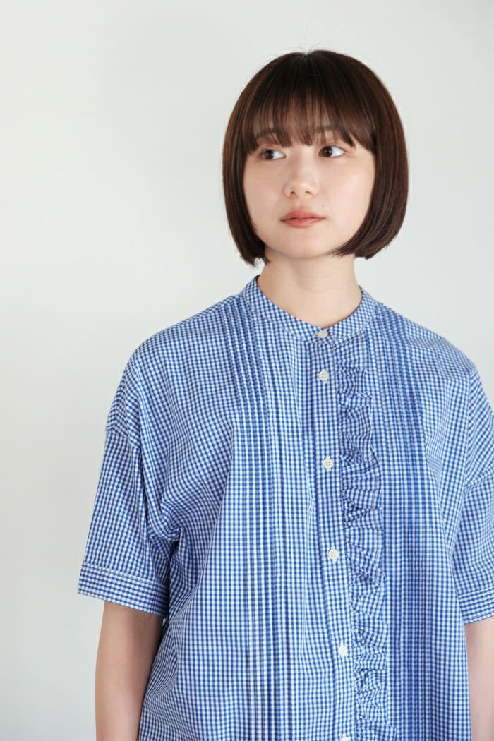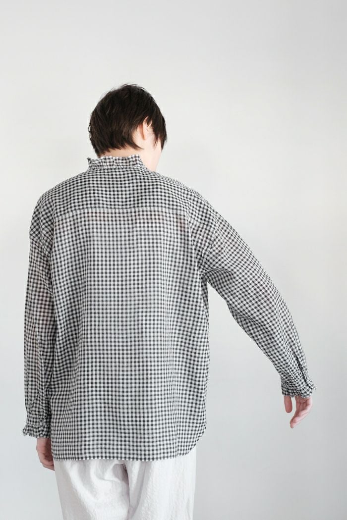 他の画像を見る maison de soil メゾン ド ソイルHANDWOVEN COTTON/SILK GINGHAM CHECK FRILL COLLAR SHIRT(25SS) ¥ 28,600 税込 SOLD OUT 再入荷お知らせ お気に入りに登録する