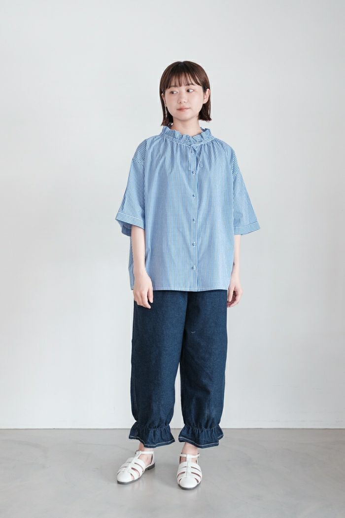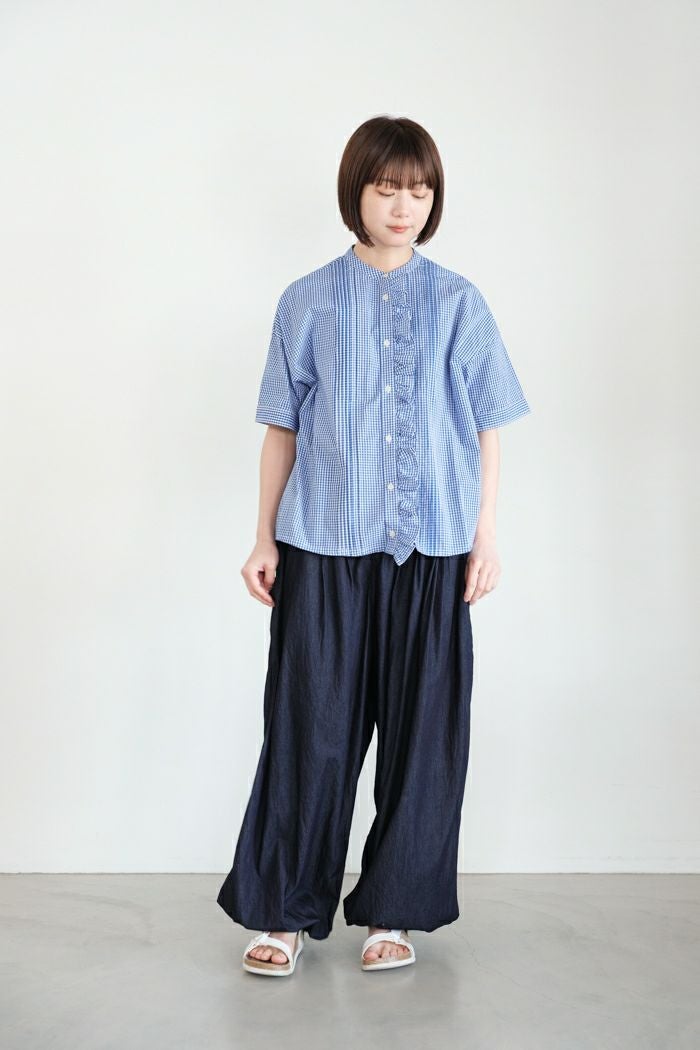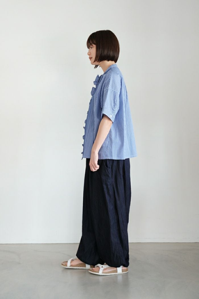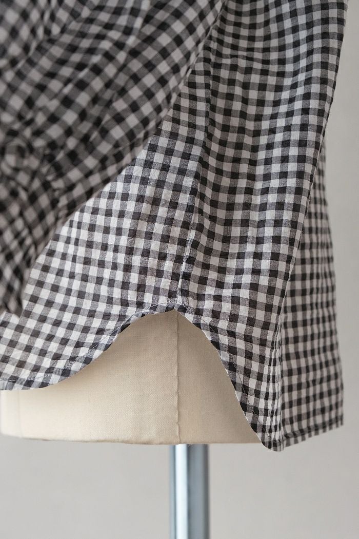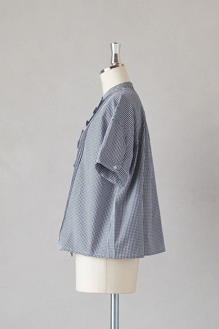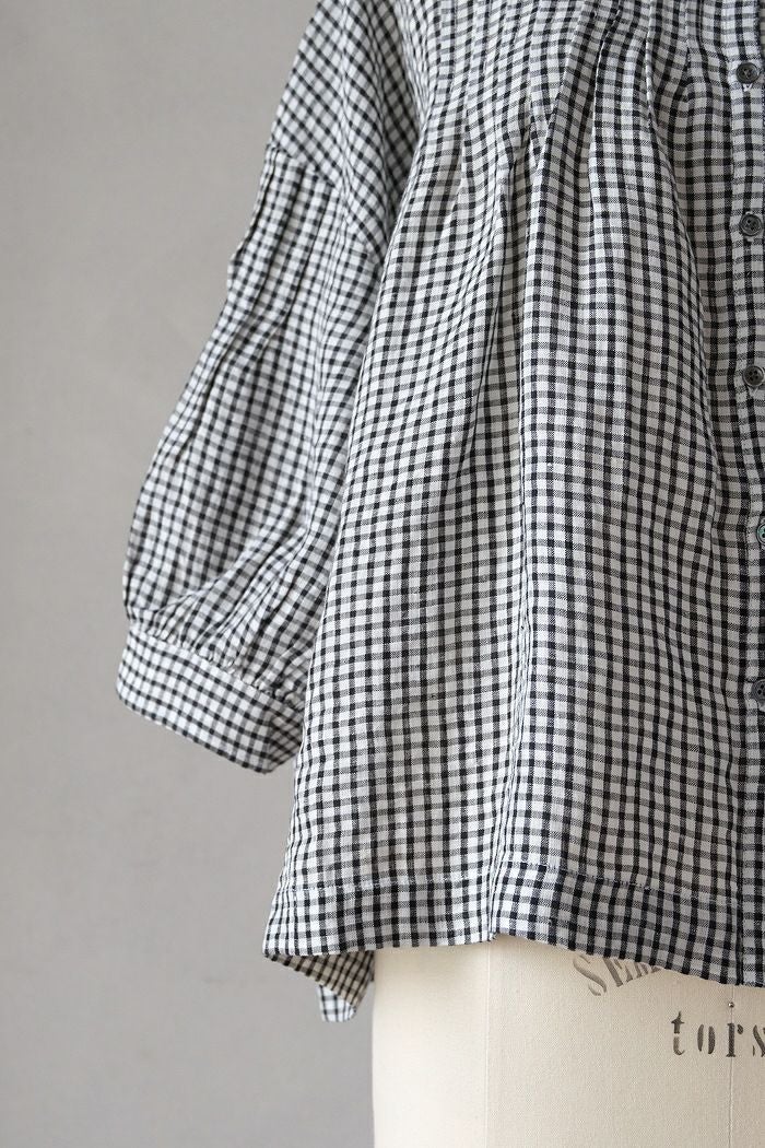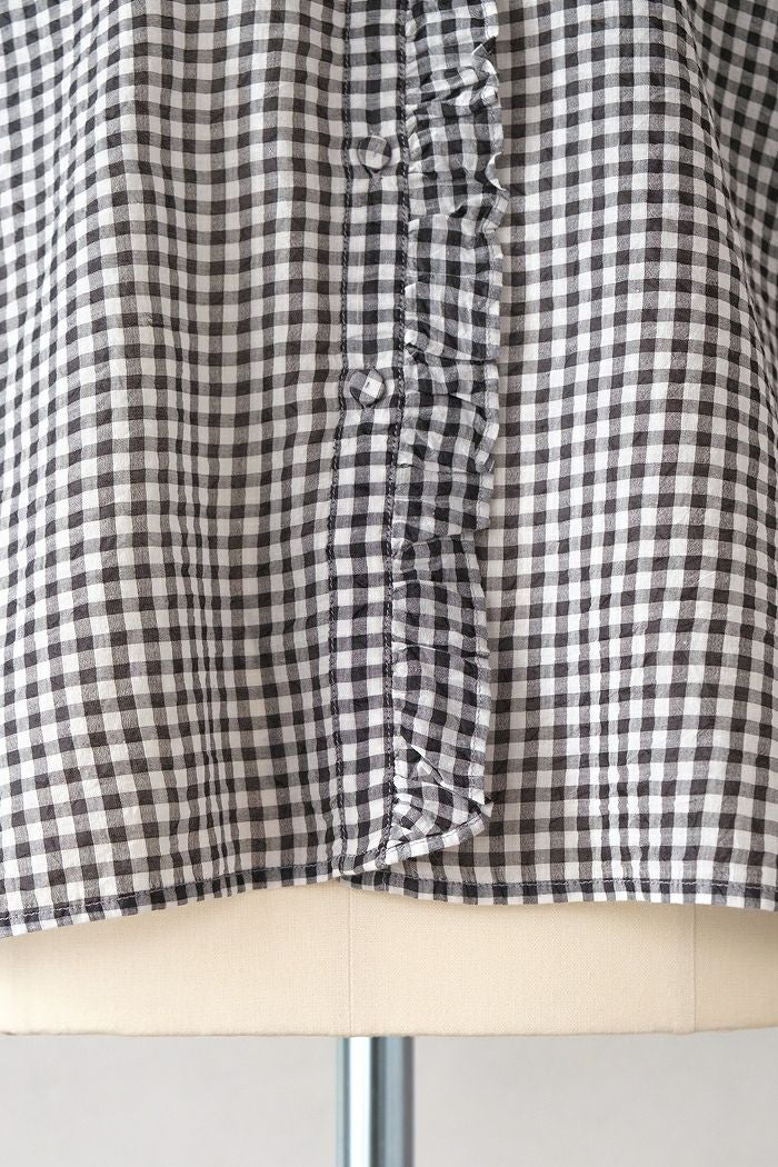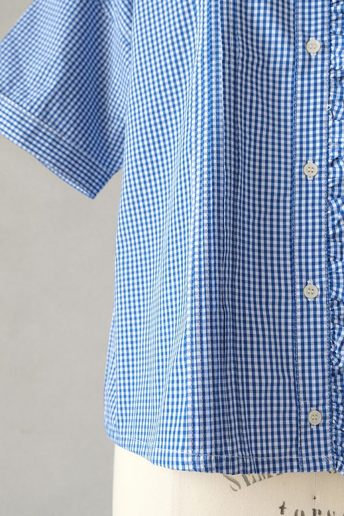 他の画像を見る maison de soil メゾン ド ソイルHANDWOVEN COTTON/SILK GINGHAM CHECK FRILL COLLAR SHIRT(25SS) ¥ 28,600 税込 SOLD OUT 再入荷お知らせ お気に入りに登録する