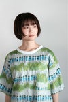 白のリブネックが爽やかなプリントプルオーバー