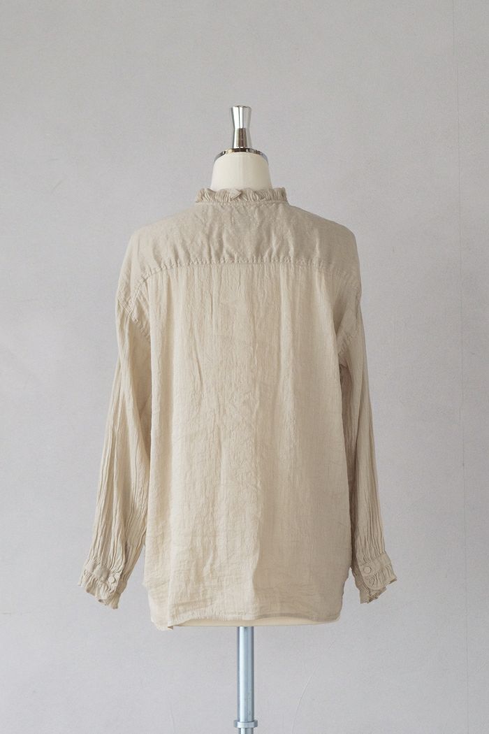 他の画像を見る maison de soil メゾン ド ソイル AUTO LOOM COTTON/LINEN PLAIN OVERDYE FRILL COLLAR SHIRT(25SS) ¥ 27,500 税込 SOLD OUT お気に入りに登録する
