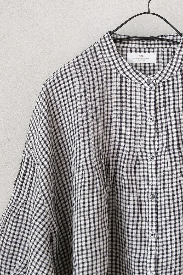 他の画像を見る SOIL ソイル 60'S LINEN CHECK BANDED COLLAR 3/4SL PINTUCK SHIRT(24AW) ¥ 22,000 税込 SOLD OUT お気に入りに登録する