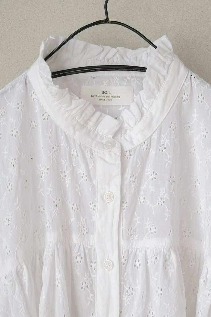 他の画像を見る maison de soil メゾン ド ソイル60s ORGANIC CAMBRIC WITH EMB CREW-NECK BOSOM EMB SHIRT(25SS) ¥ 28,600 税込 SOLD OUT お気に入りに登録する
