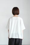 首回りはしっかりとしたパイピングできちんと感ある印象に。肩のラインがドロップしたリラックス感のある着心地で、一枚でサマになるボディラインを拾わない幅広なシルエット。 透け感があるので、タンクトップやキャミソールを重ねて。