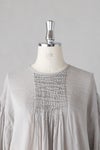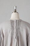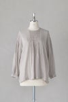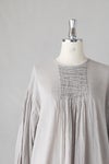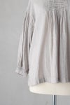製品染めにより現れる、ヴィンテージのような独特な風合いも素敵な雰囲気に仕上がっています。たっぷり施されたピンタックとギャザーの美しさは、職人の手仕事を感じる美しい1枚です。