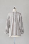60s AUTOLOOM LINEN/COTTON PLAIN OVERDYE BACK OPENING CREW-NECK SHIRTS WITH MINI PINTUCK(26SS)