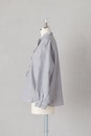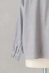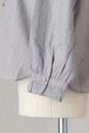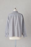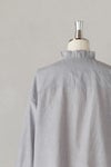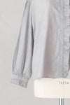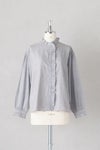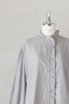 襟ぐりと前立て、袖口に繊細なフリルをあしらったブラウス。