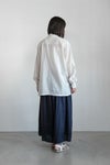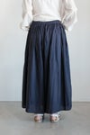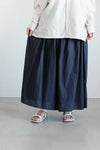 まるでスカートのようなボリュームのあるワイドキュロットパンツ。ウエストにたっぷりと入ったギャザーが、ふんわりとしたボリュームを生み出しています。 パンツ派の方にも取り入れやすいワイドなボリュームのアイテムです。オーガニックコットンの細番手の糸を平織りにした、薄手で肌触りの良い生地を使用し、熱と圧力でツヤを出す「CAMBRIC加工」を施すことで、柔らかな風合いに仕上がっています。
