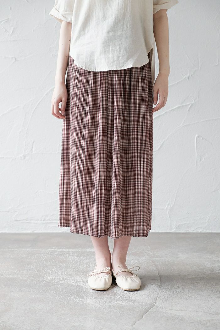 繊細なランダムプリーツが美しいチェックのロングスカート