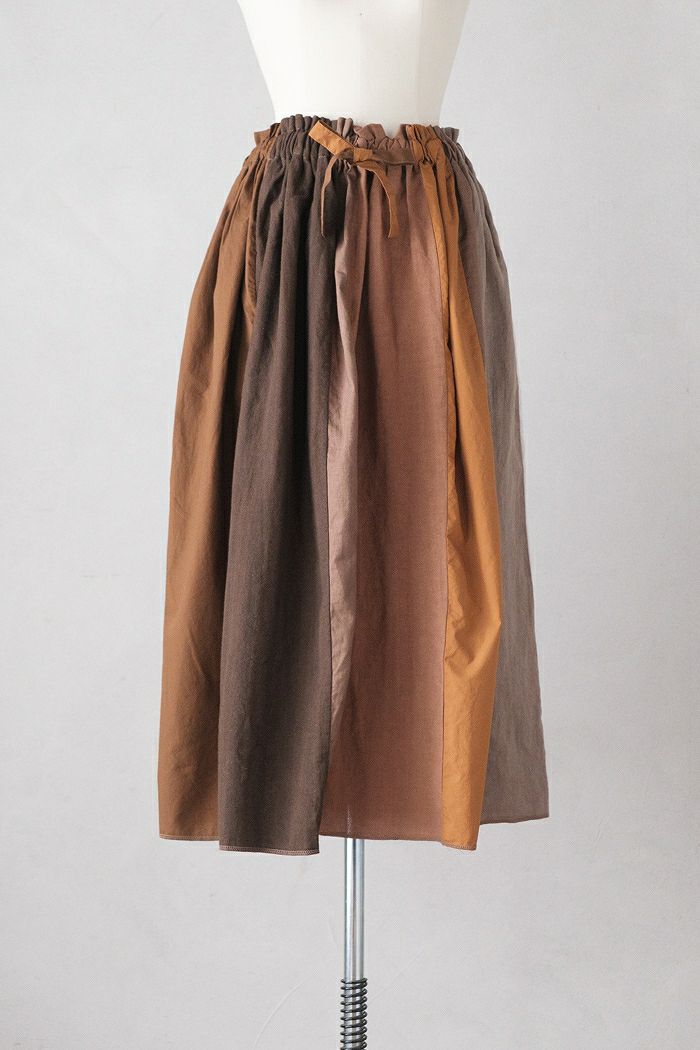 コットン&リネンMIX パッチワークギャザースカート(24AW)