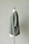 ボトムを選ばないオーソドックスな着丈で 着ると左右が自然に下がり、 少しフレアーのでる軽やかなシルエット。 とても涼しい着心地で、 夏のコーディネートにおすすめの一枚です。