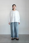 毎回大好評のイラストレーターのNATSUMEさんと、今回はKOTETSUさんの初コラボイラストをプリントした1枚。アトリエで1点1点シルクスクリーンでプリントして、 ポイントに黒の生地をタタキ付けたり、 後ろにもワンポイントのハンドプリントが入っています。