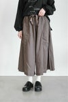 ウエスト総ゴム&ドロー紐の穿きやすい仕様で、 たっぷりのウエストギャザーから生まれる、 表情豊かなドレープ感が魅力です。 スカートのような量感のある7分丈ワイドシルエット。 シンプルなコーディネートにも映えるパンツです。