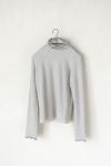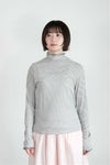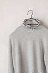 程よいシアー感のある、 インナー使いにおすすめのハイネックプルオーバー。 袖口、襟元メローミシンを施し、 波のような優しいウェーブの始末になっています。 ニットやワンピースに重ねると可愛らしい印象に。 寒い季節はニットに合わせて、 暖かくなってきたらキャミワンピースなどのインナーに。
